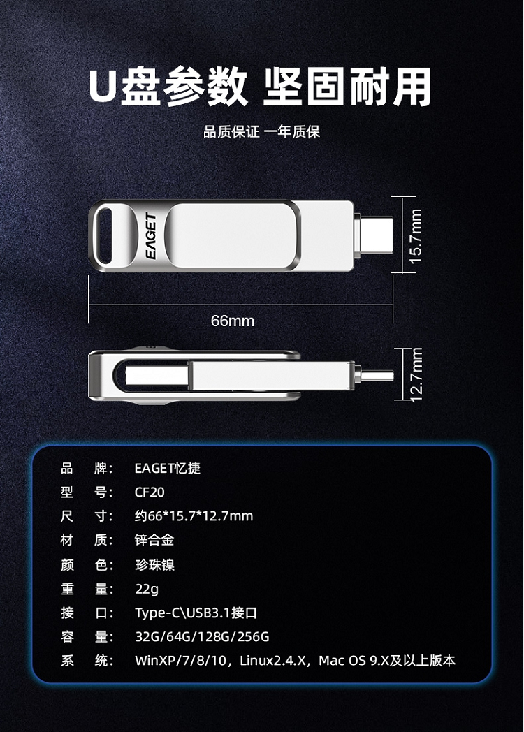 - 商品名称:忆捷 CF20 U盘 32GB 旋转金属 单位:个