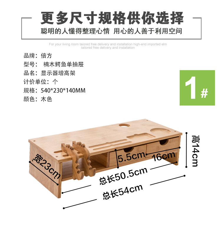 - 商品名称:倍方 楠木鳄鱼双抽屉 540*230*140mm 显示器增高架 (计价单位:个) 木色