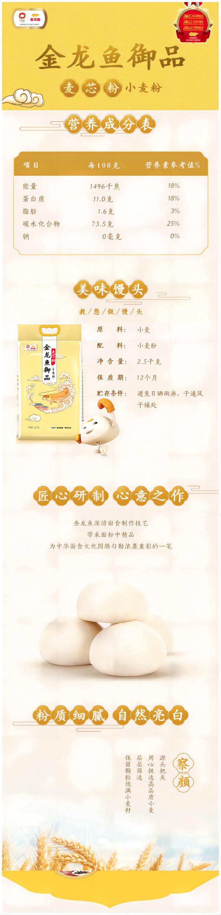 - 商品名称:金龙鱼 2.5kg 御品麦芯粉小麦粉 (单位:袋)