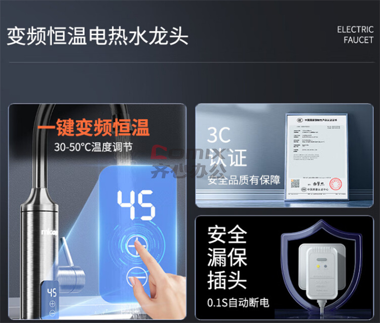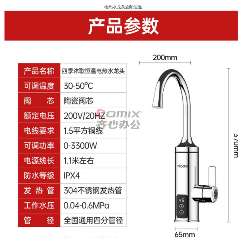 - 商品名称:四季沐歌 165x65x370mm 电热水龙头 变频恒温速热即热式 不锈钢+过滤万向头+漏保+软管生料带单位:个