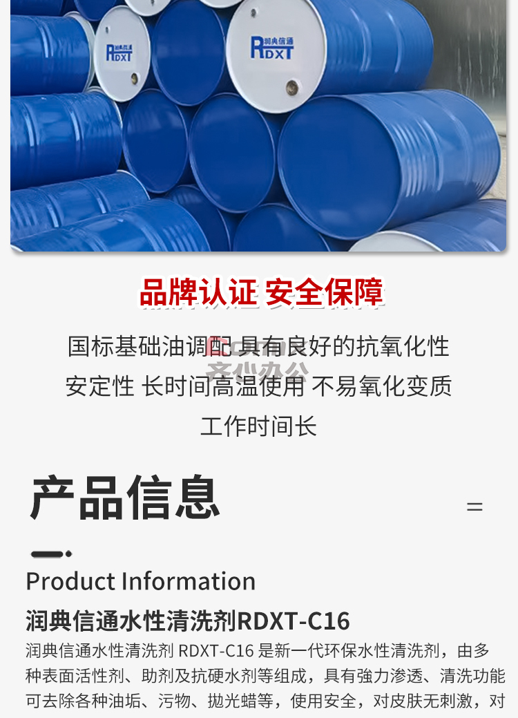 - 商品名称:润典信通 RDXT-C16 水性清洗剂 170kg/桶 黄色透明 单位:桶