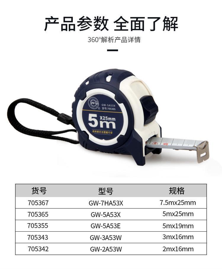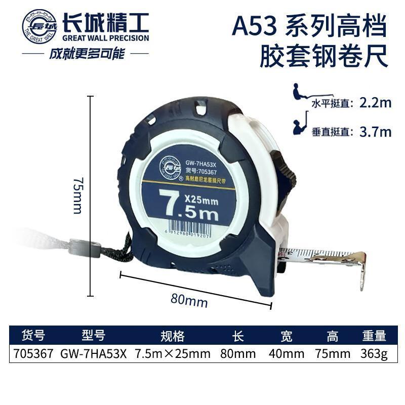 - 商品名称:长城精工(GREATWALL) 高档胶套钢卷尺 705367 A53系列7.5m*25mm (单位:件)