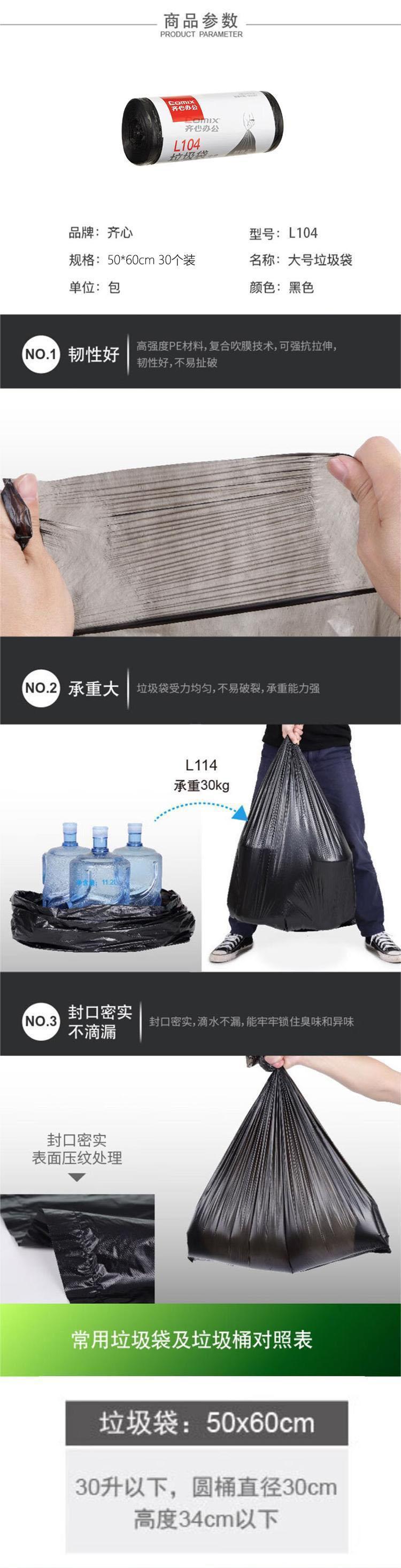 - 商品名称:齐心(COMIX) L104 50*60cm 30个装 平口垃圾袋 黑色 (计价单位:卷)