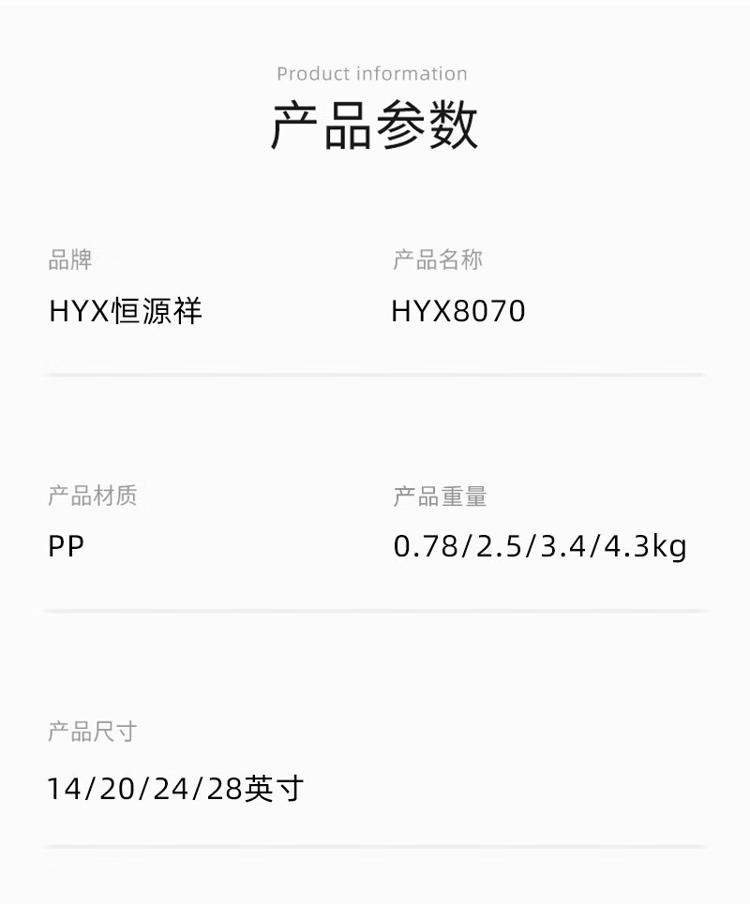 - 商品名称:恒源祥 PP优质拉杆箱套装HYX8070套装 24英寸/套