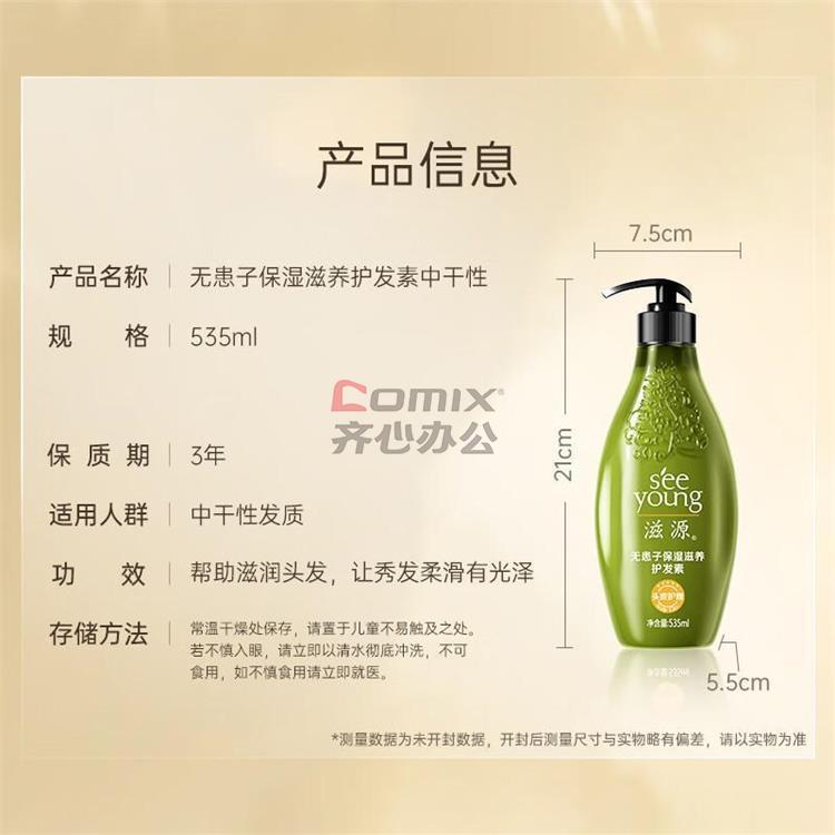 - 商品名称:滋源(seeyoung) 535ml 无患子保湿滋养护发素 中干性(单位:瓶)