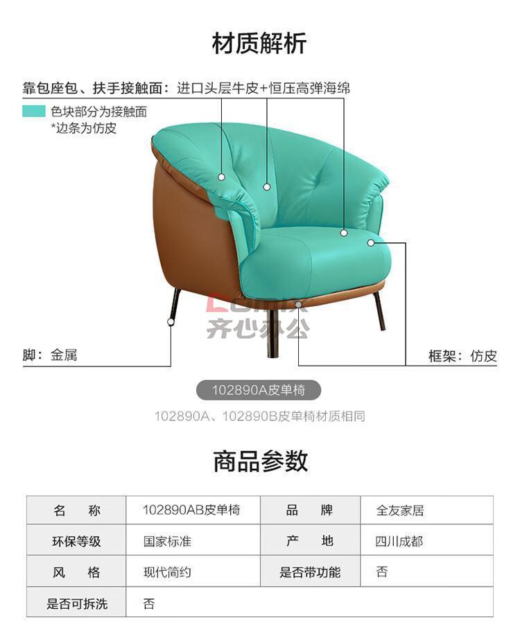 - 商品名称:全友家居 102890 单人真皮沙发椅子 米白 牛皮 花瓣沙发椅B (单位:张)