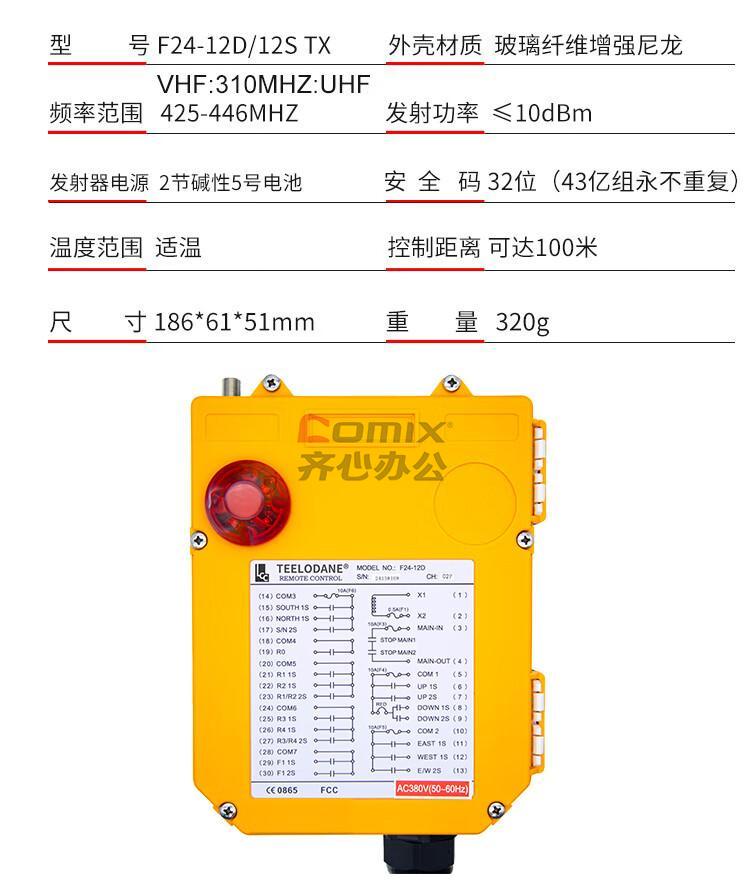 - 商品名称:禹鼎 F24-12D S/N:24172254 天车遥控器 12D单发射器 单位:台