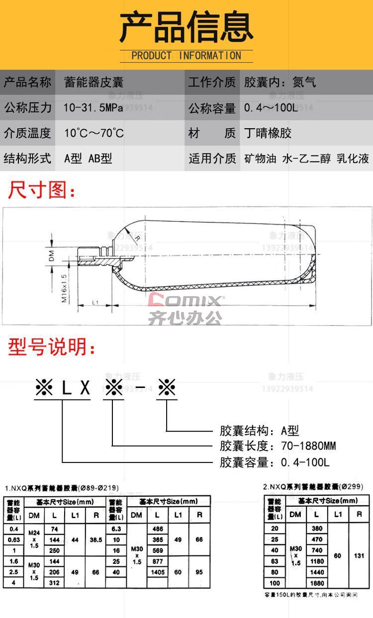 - 商品名称:XMSJ NXQ-4L 液压蓄能器皮囊 10L 16L 25L 40L 单位:件