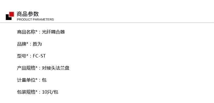 - 商品名称:胜为 FC-ST 光纤耦合器 对接头法兰盘 10只/包 单位:包