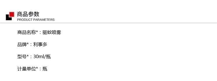 - 商品名称:利事多 30ml/瓶 驱蚊喷雾 单位:瓶