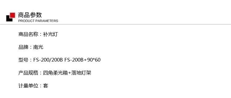 - 商品名称:南光 FS-200/200B FS-200B+90*60 补光灯 四角柔光箱+落地灯架 单位:套