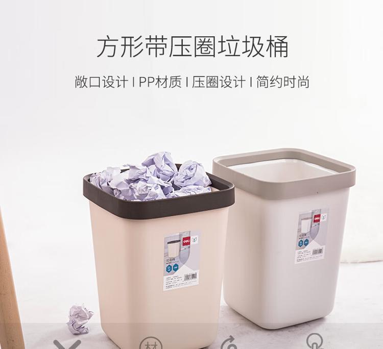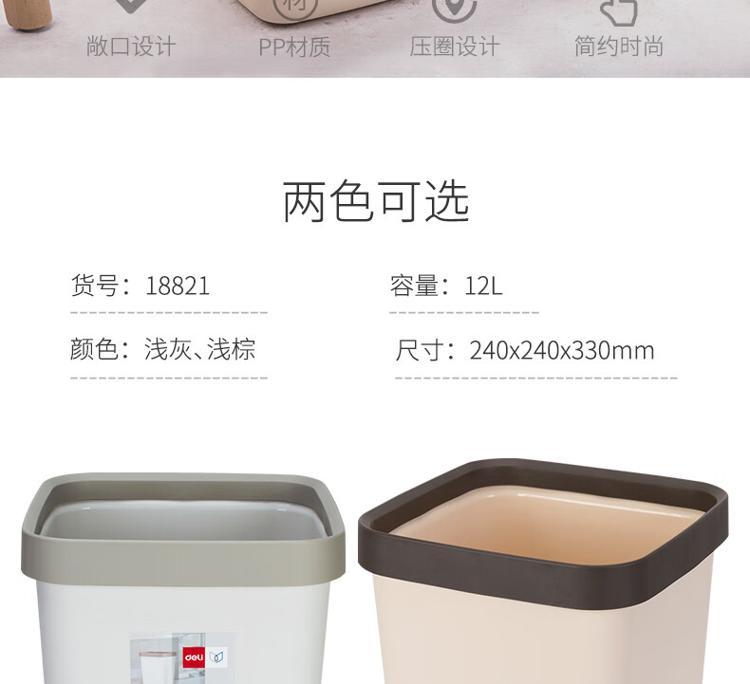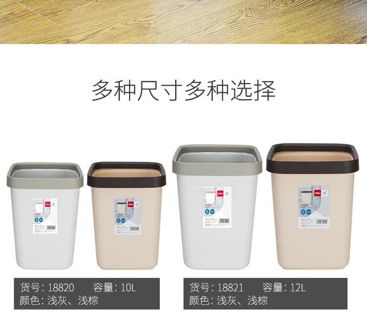 - 商品名称:得力18821垃圾桶(浅灰)12L方形敞口(单位:只)