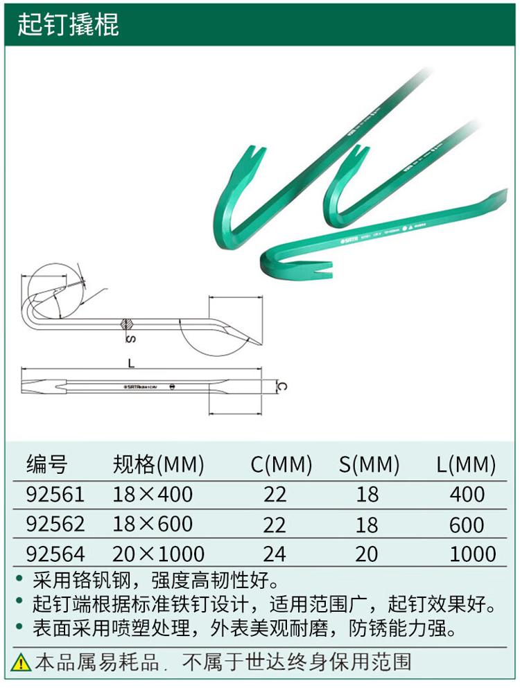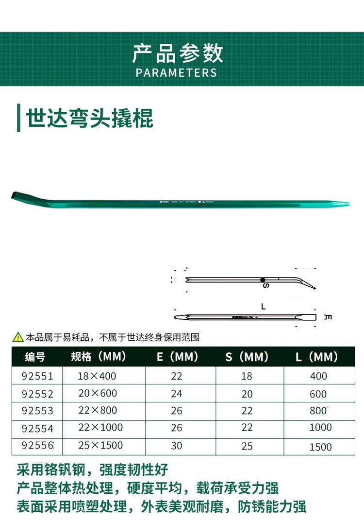 - 商品名称:世达 圆撬棍 92561 铬钒钢 18×400mm 铬钒钢 400 1根/根 根
