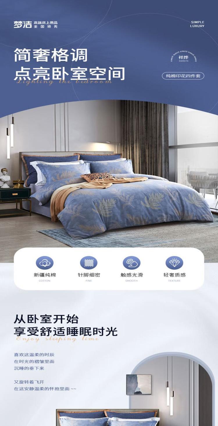 - 商品名称:梦洁家纺 1010189086 祥烨纯棉印花四件套(被套200*230cm+床单230*235cm+枕套50*70cm*2个)(单位:套)