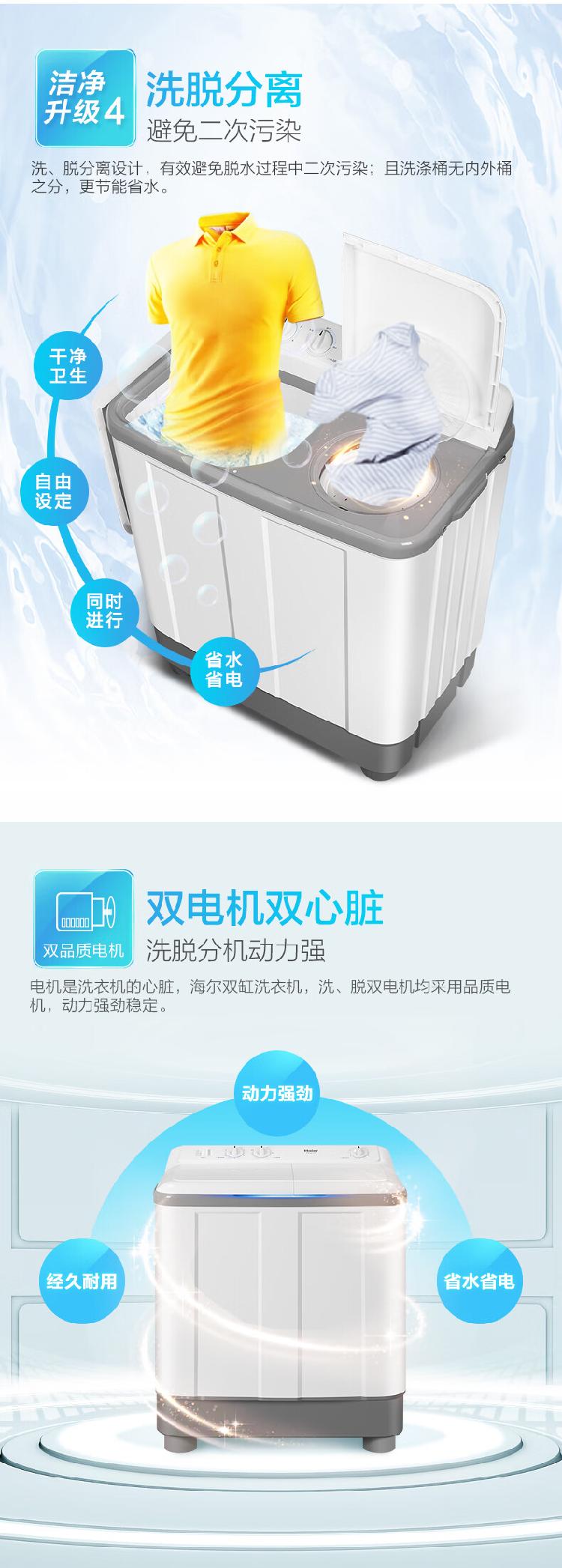 - 商品名称:海尔(Haier) XPB100-729S 双桶洗衣机 10公斤 单位:台