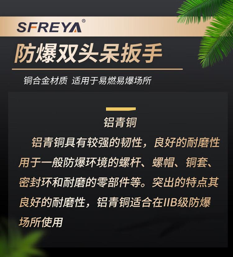 - 商品名称:SFREYA 防爆双头呆扳手 SHY1104-1924 公制 铝青铜 19×24mm 210mm 铝青铜 双头开口扳手 19×24 1把/把 把