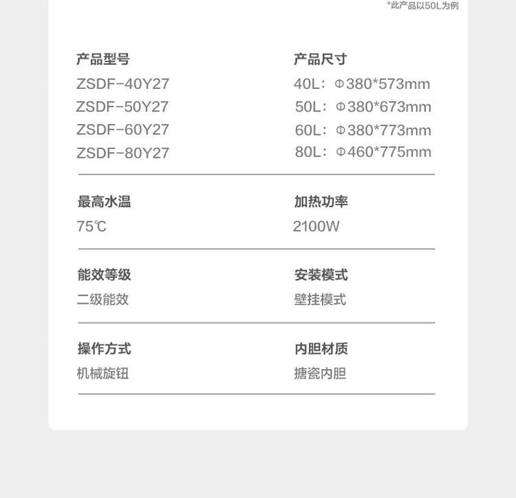 - 商品名称:村田(citin) ZSDF-80Y27 电热水器 80升 单位:台