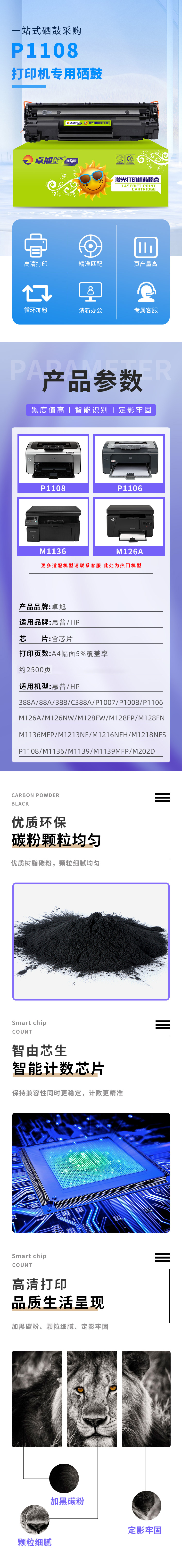 - 商品名称:卓旭 P1108硒鼓适用惠普88A M1213NF CC388A黑色 单位:支