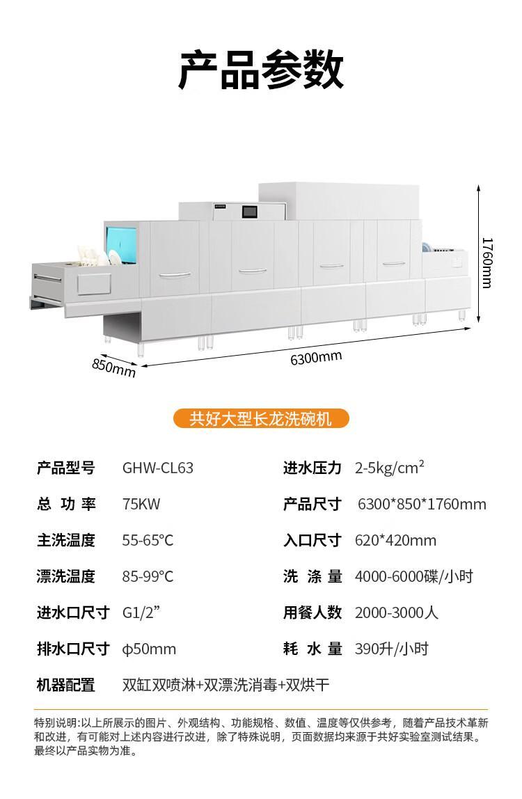 - 商品名称:共好 GHW-CL63 长龙式洗碗机 单杠双喷淋履带式 单位:台