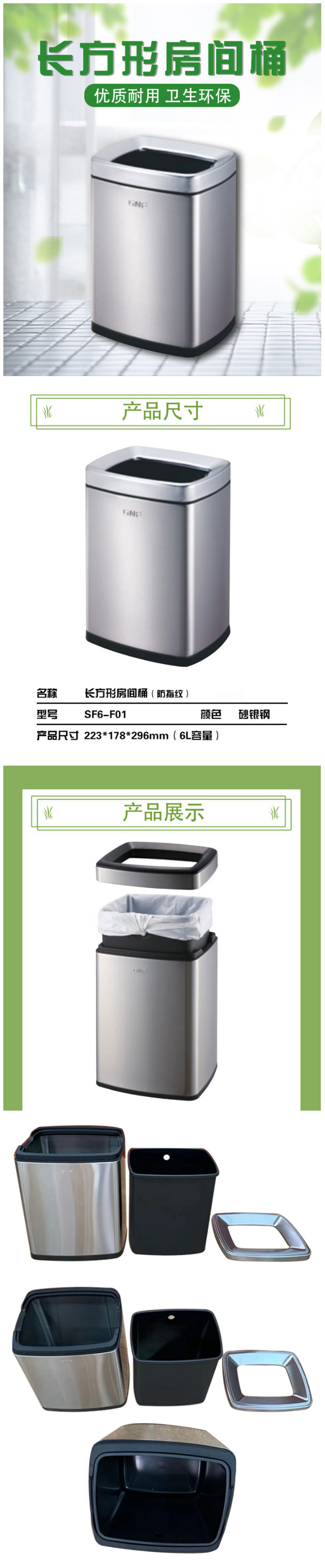 - 商品名称:GNF SF6-F01Y 方形开口垃圾桶不锈钢垃圾桶 6升 银色 单位:个