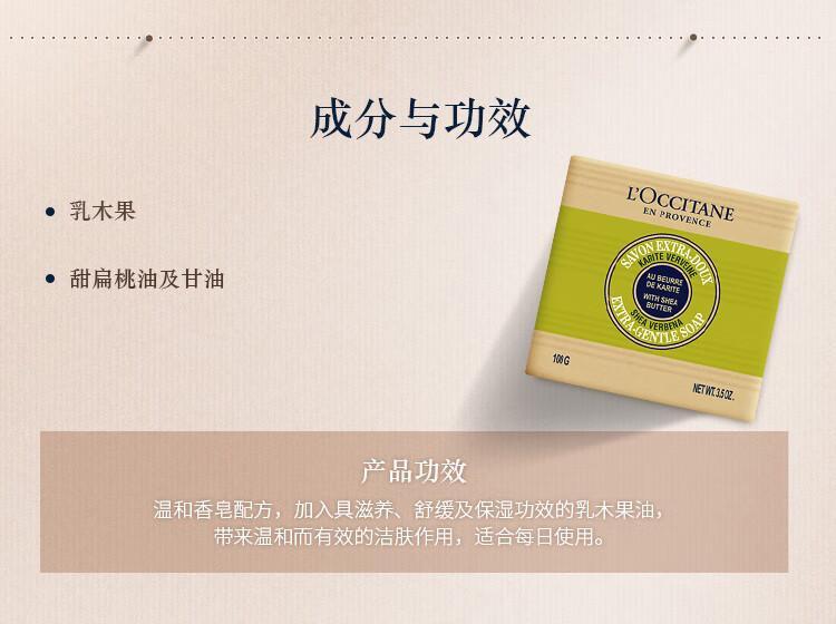 - 商品名称:欧舒丹 香皂 100g 乳木果马鞭草味洁肤皂 单位:块