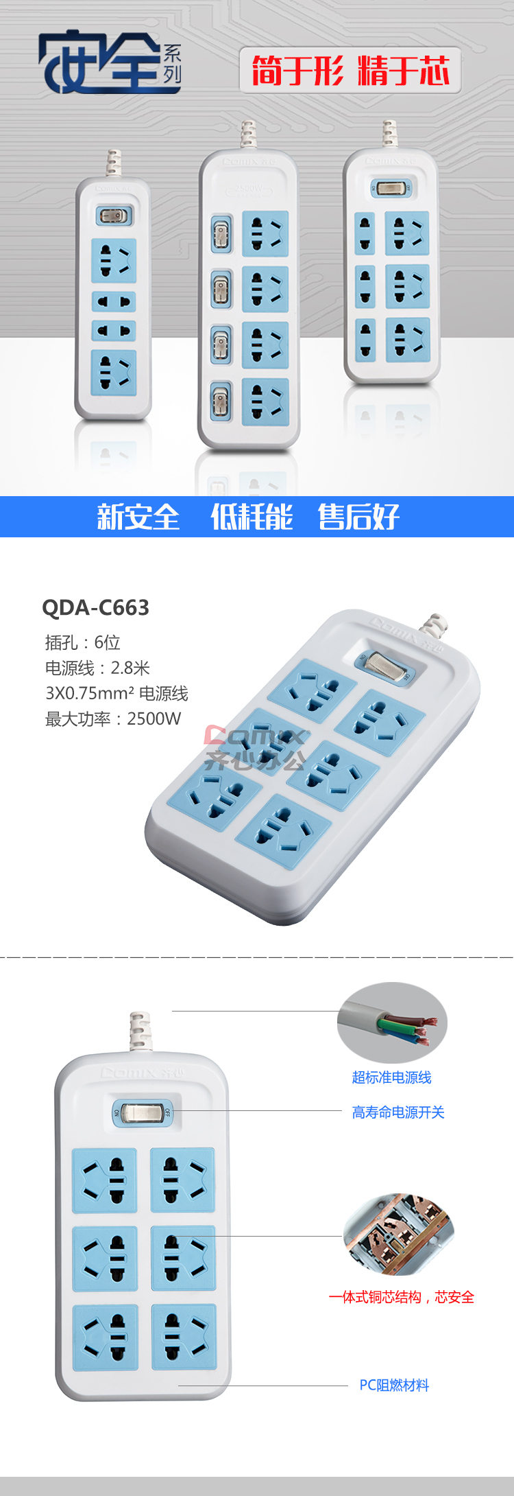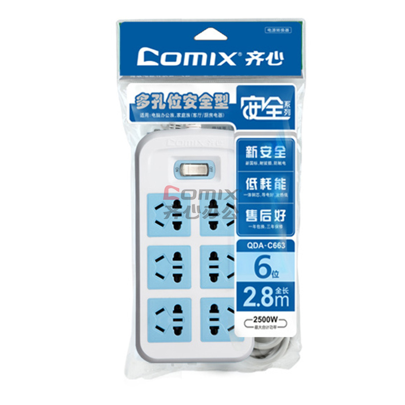 - 商品名称:齐心 QDA-C663 电源转换器-安全系列排插 2.8M 白蓝