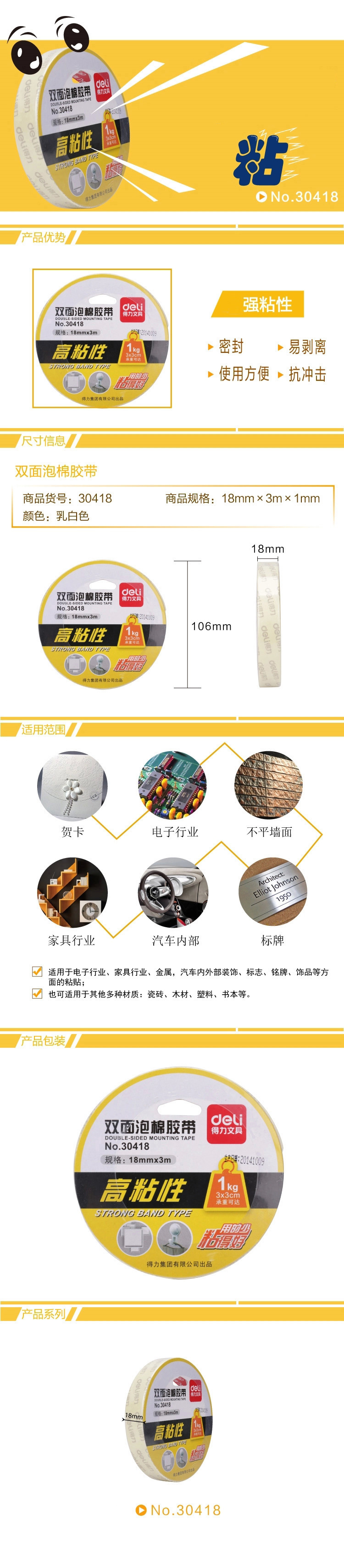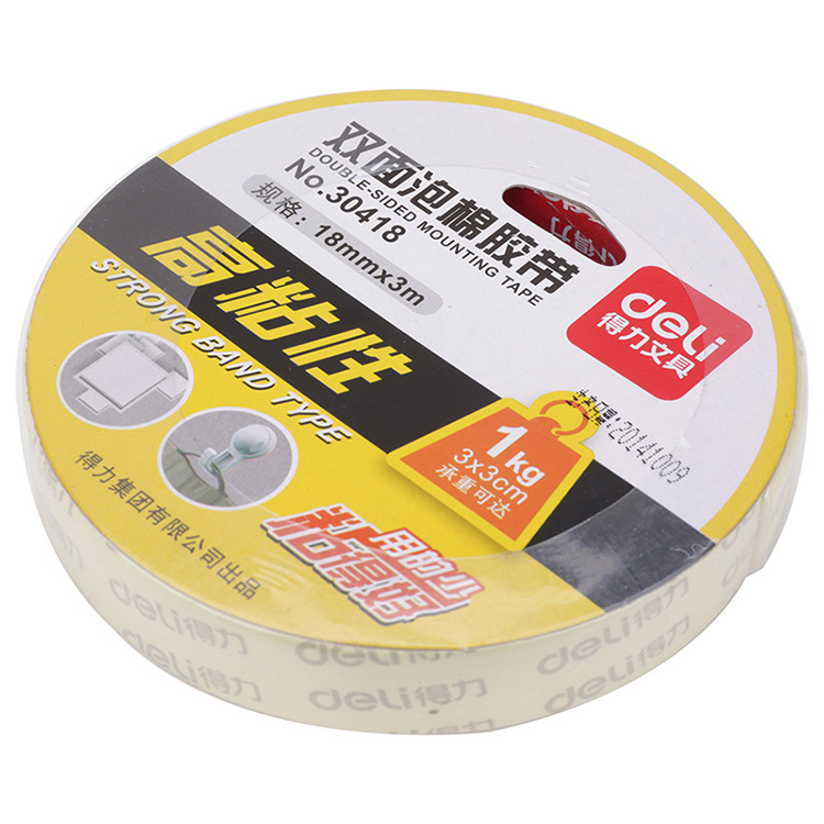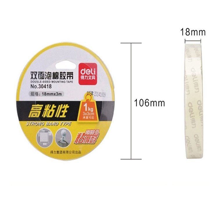 - 商品名称:得力(deli) 30418 18mm*3m 双面泡棉胶带 (计价单位:个) 白色