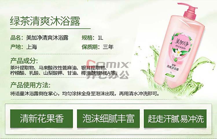 - 商品名称:美加净 清爽沐浴露绿茶 1L 单位:瓶