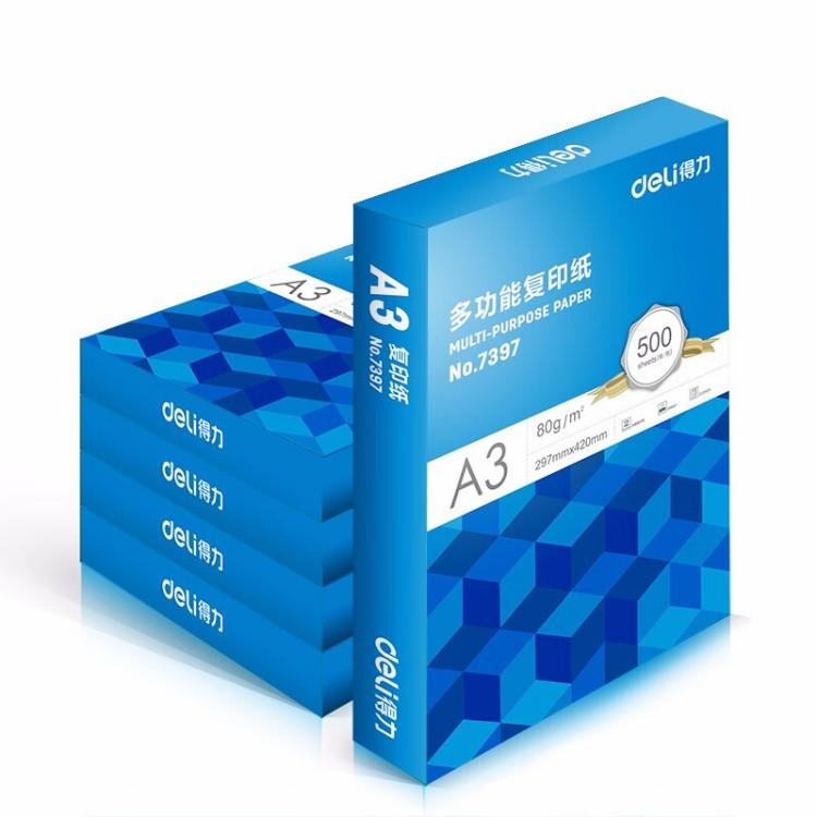 - 商品名称:得力 复印纸 7370 80g 500张/包 4000张 A3 蓝色 5包/箱 箱