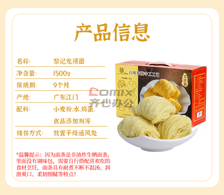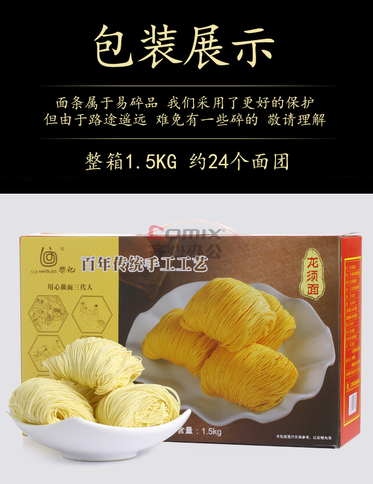 - 商品名称:黎记 1500g 广式风味非油炸龙须面 (单位:箱)