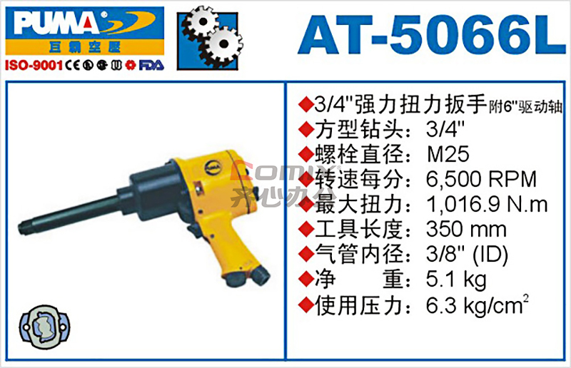 - 商品名称:巨霸 3/4\"气动冲击扳手 AT-5066L 枪形 1014Nm 6500rpm 单位:把