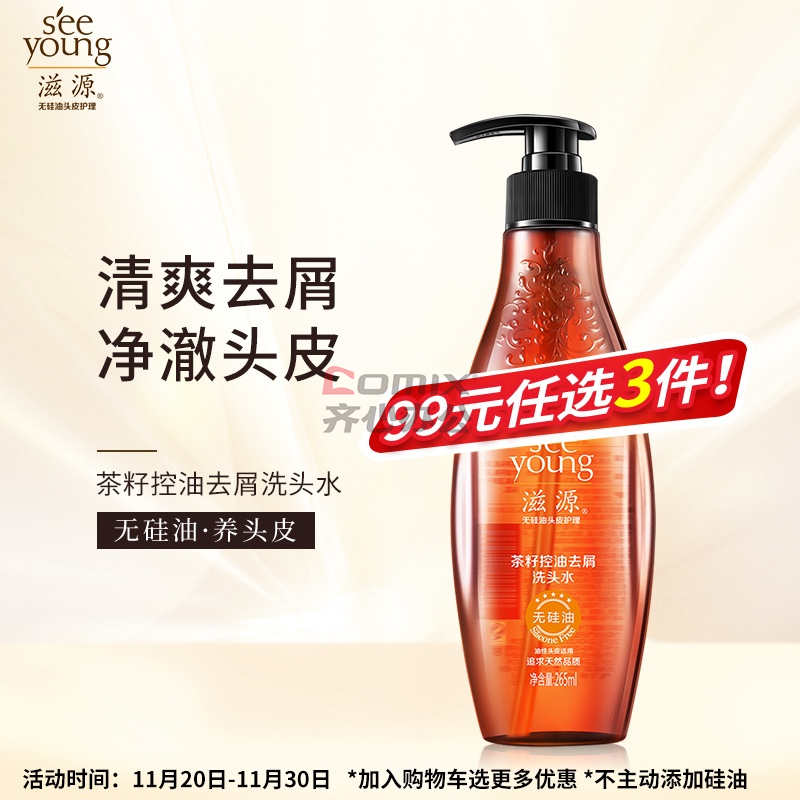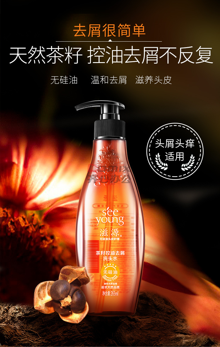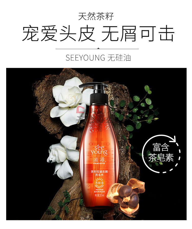 - 商品名称:滋源 SEEYOUNG 茶籽水润去屑洗头水265ML 无硅油洗发水