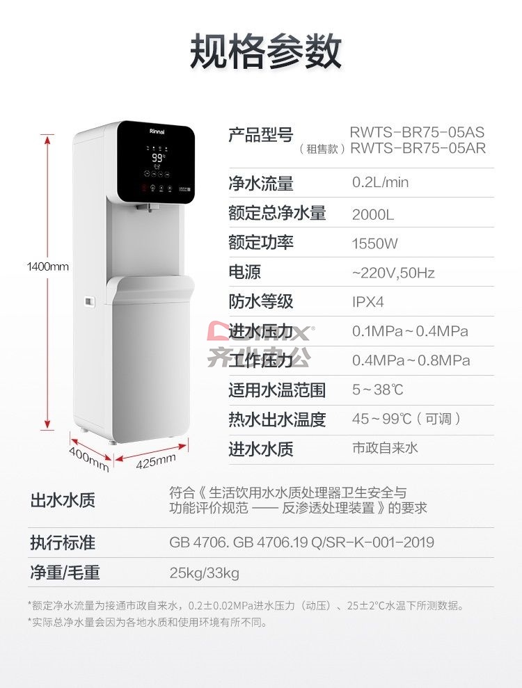 - 商品名称:净水设备 林内/Rinnai RWTS-BR75-05AS 台上式 7级