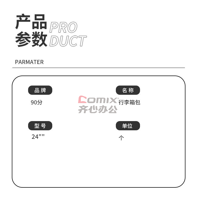 - 商品名称:90分 6941413216708 行李箱包 单位:个